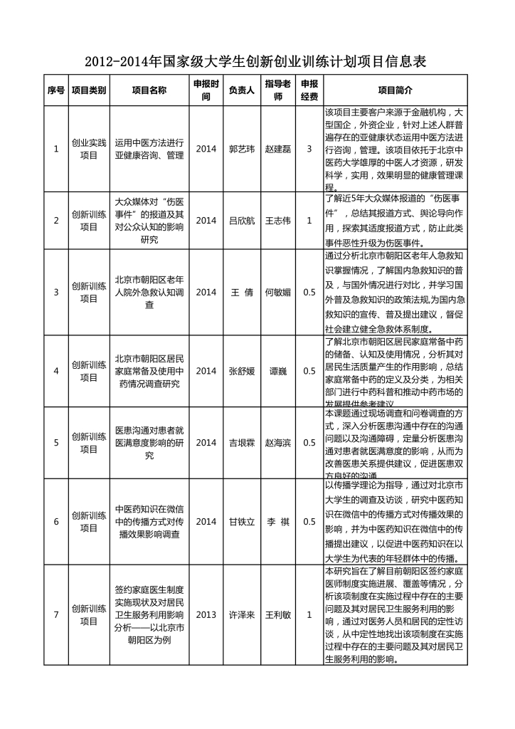 2012-2014年国家级老员工创新创业训练计划项目信息表(304永利集团)