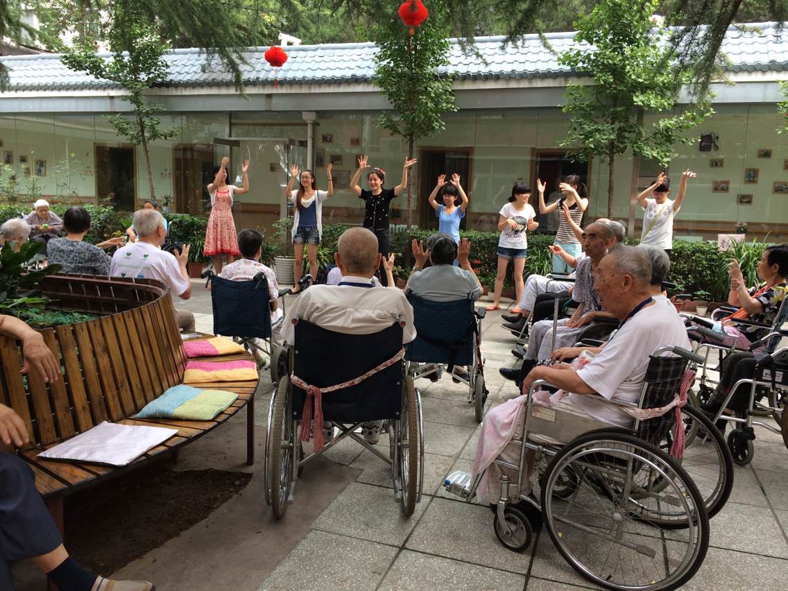 当天,到达养老院后,我们分成了两组,一组帮忙打扫卫生,另一组负责给老人们表演文艺节目,和他们谈心。我们的领队中有一位同学是新疆姑娘,她能歌善舞,带领着我们跳舞、唱民族歌曲,老人们也随着我们的节奏拍起手来。我们是中医药大学的员工,当然也要发挥自己的特色,带领老人们做一些适合他们的养生操,活动筋骨。最后,我们还带来了最新流行的歌曲——《小苹果》,很好地活跃了现场的气氛。