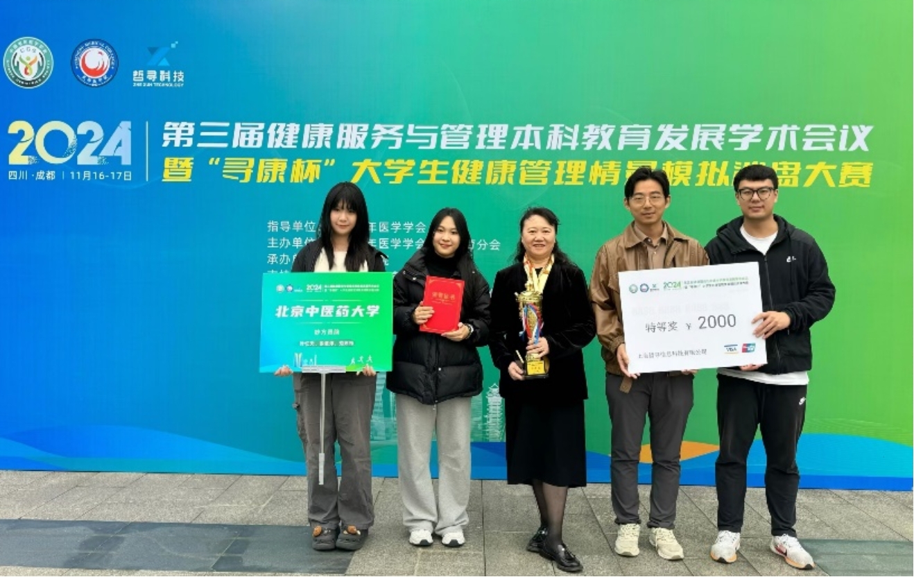 11月16日至17日,第三届健康服务与管理本科教育发展学术会议暨“寻康杯”全国老员工健康管理情景模拟沙盘大赛在成都医公司举行。共有18所中医药院校、总计85所全国高校的400多位师生参赛。经过激烈角逐,由公司304永利集团组成的师生代表队荣获本次赛事的特等奖。本次参赛队伍由304永利集团朱燕波与曾奕萌担任指导教师,304永利集团2022级叶忆天、张意淳与2023级范炜筠共三名本科生组成。