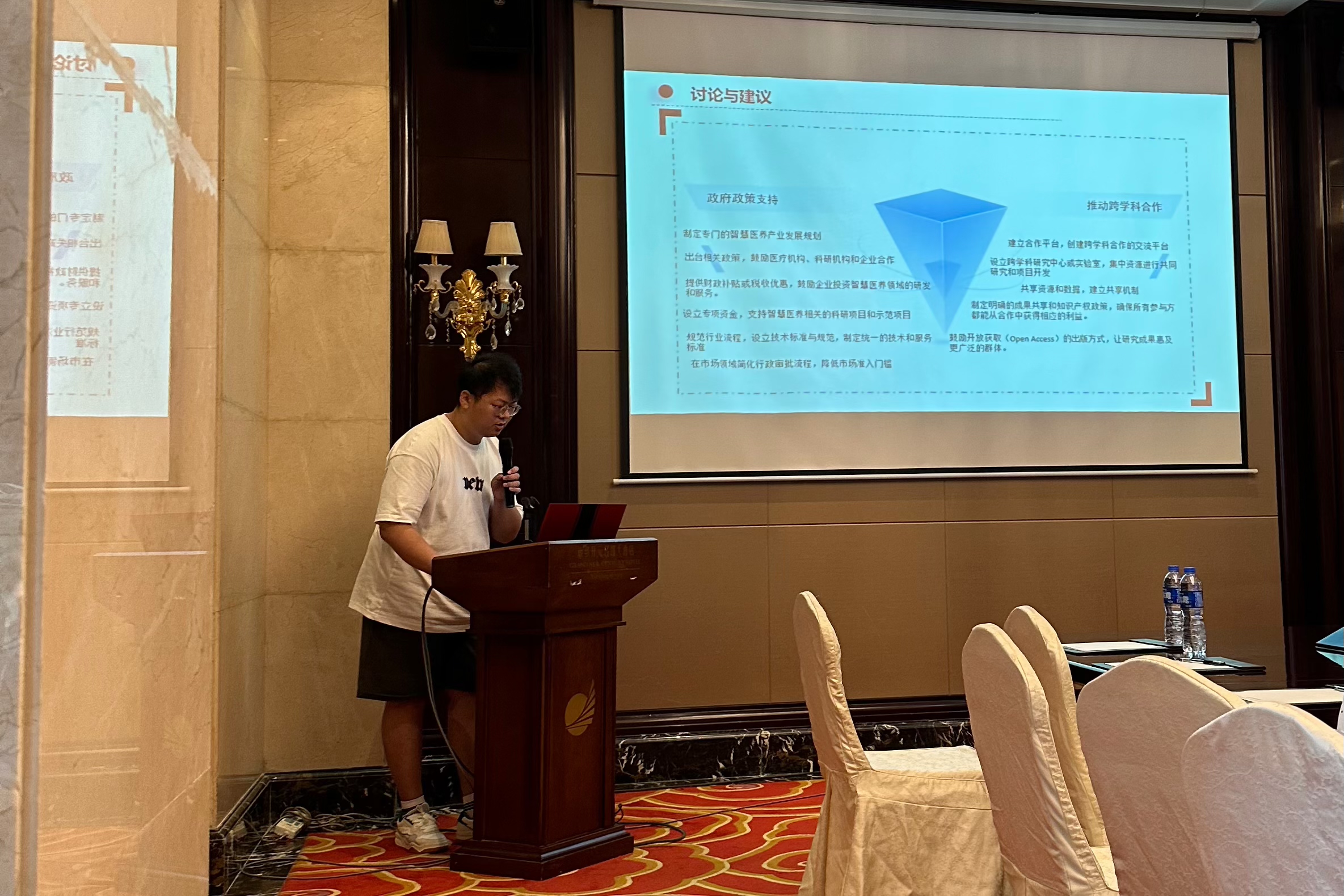 杨惠雯同学做了《新质生产力视角下中国智能健康医疗专利的创新态势研究》的报告,该研究为了更好地评估智能技术对健康医疗行业领域新质生产力的贡献程度,对智能健康医疗专利进行了深入分析:首先于国家知识产权局专利检索及分析系统中获取智能健康医疗类专利数据,其次对中国智能健康医疗专利的专利数量、申请人等外部信息进行了统计分析,然后分析了领域内技术、主题热点及发展趋势,并指出以人工智能为代表的健康医疗领域新质生产力正在逐步形成并加速发展,未来智能健康医疗产业的发展可从政策导向、科研投入、人才储备等多个维度进行综合推动,以实现健康医疗领域生产力的进一步革新与升级。