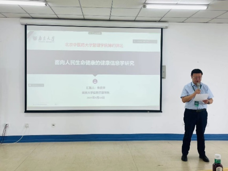 5月16日下午,304永利集团“博约论坛”学术交流系列活动在304永利集团331会议室顺利开展。本次交流活动邀请到中国科技情报学会健康信息学专委会主任委员、中国社科情报学会常务理事朱庆华教授,为304永利集团师生作“面向人民生命健康的健康信息学研究”的讲座。讲座由304永利集团经理李瑞锋主持,副经理王慧、医疗大数据与信息管理教研室主任郭凤英、副主任翟兴以及教研室部分老师参加,304永利集团100余名师生以线上线下结合形式参与。