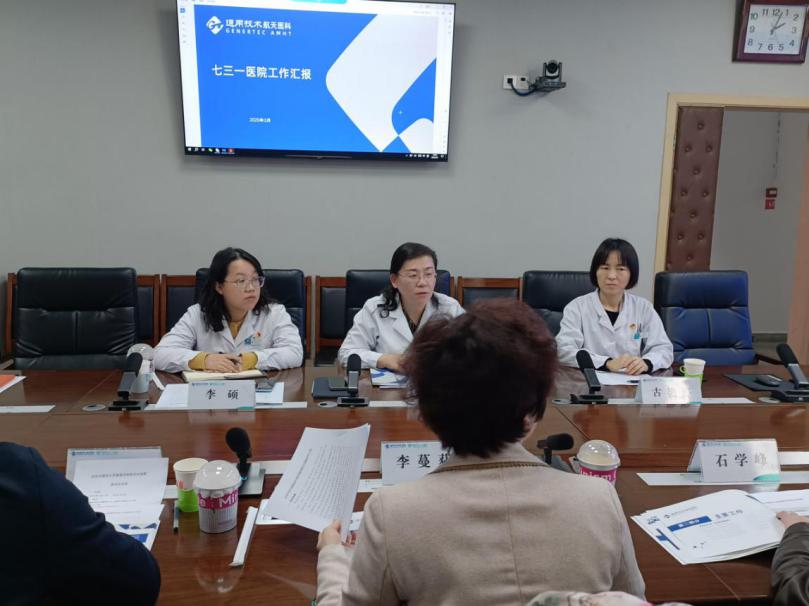 抵达七三一医院后,双方在行政楼会议室进行了交流座谈。七三一医公司党委书记杨姝雅详细介绍了医院的基本情况、主要工作、2025年计划和发展思路,并展现了七三一医院未来的宏图远景。