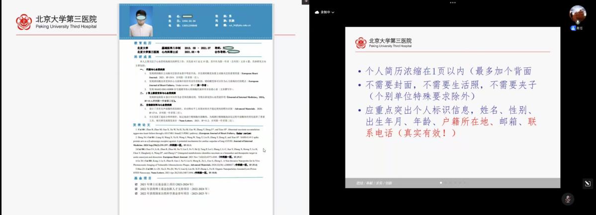 为认真落实教育部关于做好2025届全国普通高校毕业生就业创业工作的通知,全力保证公司2025届毕业生就业局势稳定,实现高质量充分就业。2025年3月5日晚,304永利集团邀请北京大学第三医院人事处负责招聘的高任老师讲解简历制作注意事项以及面试技巧。分享会由304永利集团就业专员张毅超老师主持,全校有求职需求的员工参加。