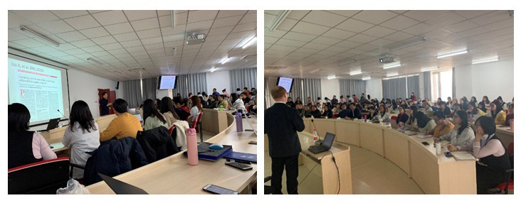 刘晓云教授结合其所在北大卫生发展研究中心团队所开展的医改政策措施评估的相关研究工作,从近几年北京地区 “药品零差率”、“医耗联动”等改革的实施背景和目标入手,带领同学们从医改政策评估的内容、设计、方法及结果四个方面,对医改评估的具体过程展开讨论。他介绍了对医改政策实施效果评估从定量到定性的研究过程;利用医改评估框架图、医改前后医疗服务价格表等图表,形象地展示了医改政策评估的流程和结论;并对相关评估指标的变化原因进行了深入的分析;凝练出北京市医改在费用平移和分级诊疗两个方面取得的成果,即医疗费用增长趋势得到明显遏制,药费占比显著下降;患者分流效果明显,三级医院门诊量下降,基层门诊量显著增加;医患双方逐渐形成新的行为模式和应对机制。交流环节,刘教授详细解答了同学们在研究设计和论文写作中遇到的困惑,提出了中肯、严谨的建议,使大家大有顿开茅塞之感。