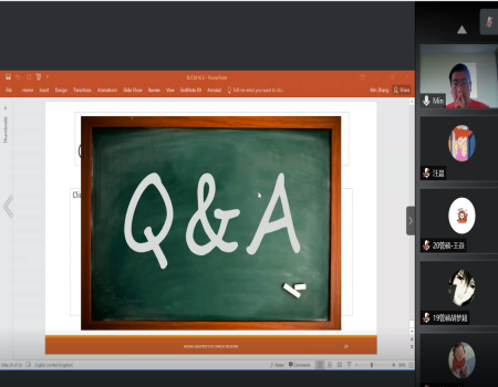 精彩的分享结束后,Min Zhang教授与公司郑秋莹副教授,就“互联网医疗的国内外发展现状”、“质性研究的分析方法”等从宏观和微观两个层面的诸多问题交换了学术意见,同学们收获良多。最后,郑秋莹副教授代表全体师生对Min Zhang教授的分享表示衷心感谢,本次线上学术交流圆满结束。