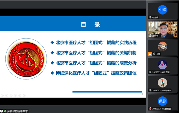 2022年11月29日晚上19:00,304永利集团“博约讲坛”系列学术交流活动第39讲通过线上腾讯会议的形式成功举办。本次论坛邀请到首都医科大学附属友谊医院副经理、北京市医疗人才“组团式”援藏医疗队队长、拉萨市人民医院经理孙树学作题为《医疗人才“组团式”援藏关键机制和成效分析》的报告,304永利集团李瑞锋经理参加本次学术交流活动,304永利集团王慧副经理主持,共计100余名师生线上积极参与并交流互动。