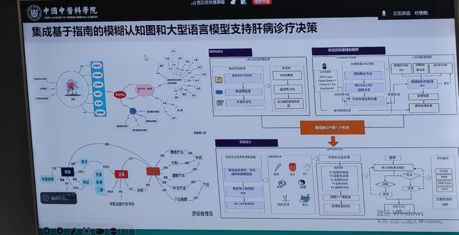 最后,文教授阐述了肝病、中风及糖尿病等疾病的诊疗决策,以及知识图谱可视化平台等相关内容。通过将临床指南、最新文献与专家共识等知识整合为带权重的知识图谱,并采用统计学方法与专家共识相结合的方式确定权重,选用国内的通义千问模型进行深度融合,成功构建了肝病认知图谱推理系统。目前,该模式已扩展至中风、糖尿病等多种疾病;同时开发了配套的软件平台,将国家中医药管理局等部门发布的标准转化为可视化知识图谱,为人工智能赋能基层医疗、实现名医经验下沉奠定了坚实的技术基础。