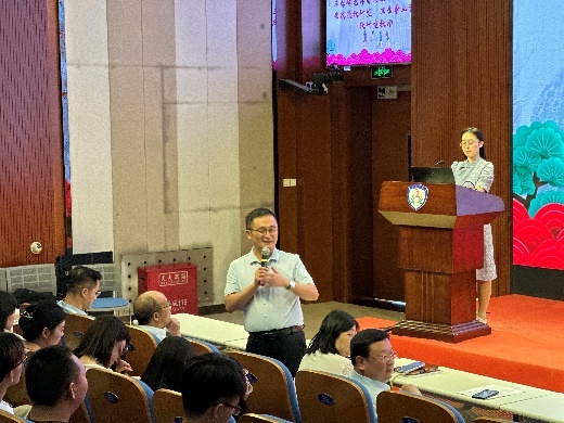 大会第三项,卫生财经与卫生政策教研室主任及卫生事业管理教研室教师代表石学峰、健康管理与心理教研室主任朱燕波、药事管理教研室主任徐敢、医疗大数据与信息管理教研室主任郭凤英以及健康与医药行业管理教研室专业课教师郭然老师分别向新生详细讲解了各教研室的基本情况。老师们详尽的介绍让新生们对公司的各个教研室有了更加深入的了解,也激发起新生对管理专业的浓厚兴趣。