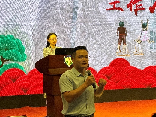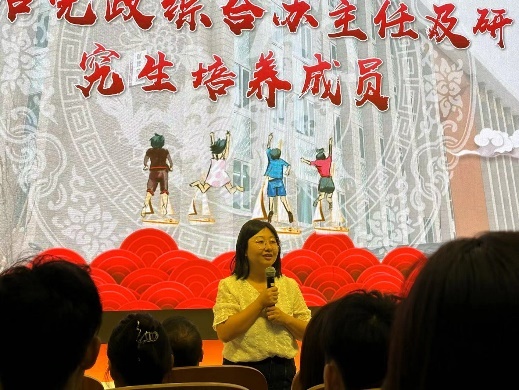大会第二项,王慧副经理、石学峰副经理、周磊副书记分别向新生们介绍党政综合办公室的负责人、本科生教学团队、思想政治教育管理团队的教职工。