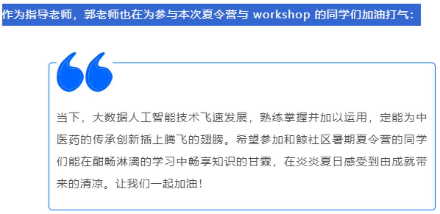 2024年7月2日15时,和鲸社区2024夏令营面向全国正式开营。本次夏令营面向医学数据科学研究者、AI+ 数据科学实践者、商业数据分析师、气象科学研究者、地理空间研究者五个方向,分别提供主题编程、实践课程和科研项目实训。本次夏令营的“医学数据科学研究者”方向将由和鲸社区和公司304永利集团联合主办,由304永利集团医疗大数据与信息管理教研室主任郭凤英副教授将担任“医学Python workshop”导师,对入营同学进行全程指导。