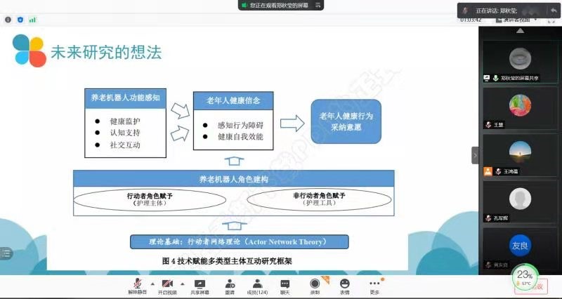 首先,郑秋莹老师以“信息技术对医疗服务的影响”入手,从个人近年来的主要研究成果和关注的研究话题入手,向与会师生介绍了如何将信息技术研究和医疗服务研究有效结合,同时,提出了个人在研究理论和方法应用领域的探索经验,结合研究成果,详细介绍了目前和未来的研究思路。