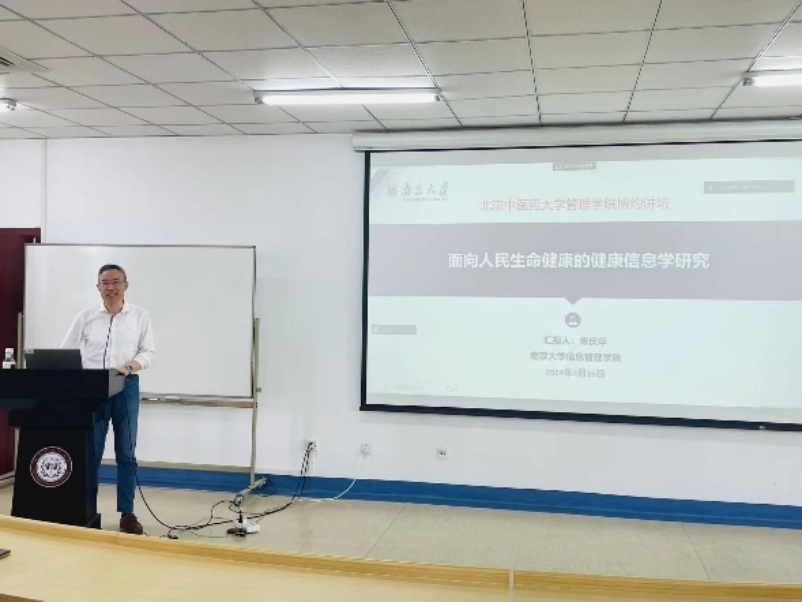 5月16日下午,304永利集团“博约论坛”学术交流系列活动在304永利集团331会议室顺利开展。本次交流活动邀请到中国科技情报学会健康信息学专委会主任委员、中国社科情报学会常务理事朱庆华教授,为304永利集团师生作“面向人民生命健康的健康信息学研究”的讲座。讲座由304永利集团经理李瑞锋主持,副经理王慧、医疗大数据与信息管理教研室主任郭凤英、副主任翟兴以及教研室部分老师参加,304永利集团100余名师生以线上线下结合形式参与。